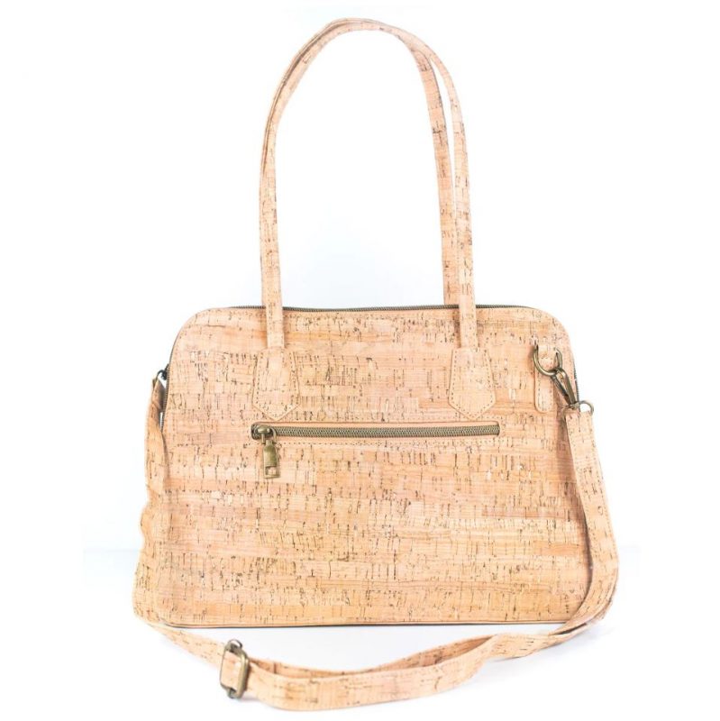 Korková kabelka přes rameno i do ruky, s dlouhými uchy a odepínatelným popruhem.