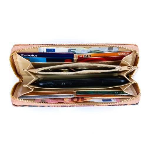 Prostorná dámská peněženka z přírodního korku, s poutavým barevným potiskem.